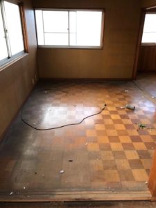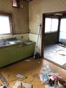 まずは昨年当社で技能実習生の寮として中古住宅を購入しました。耐震強度も足りず、雨漏れもある状況でしたのでとりあえず内装の解体を行いました。